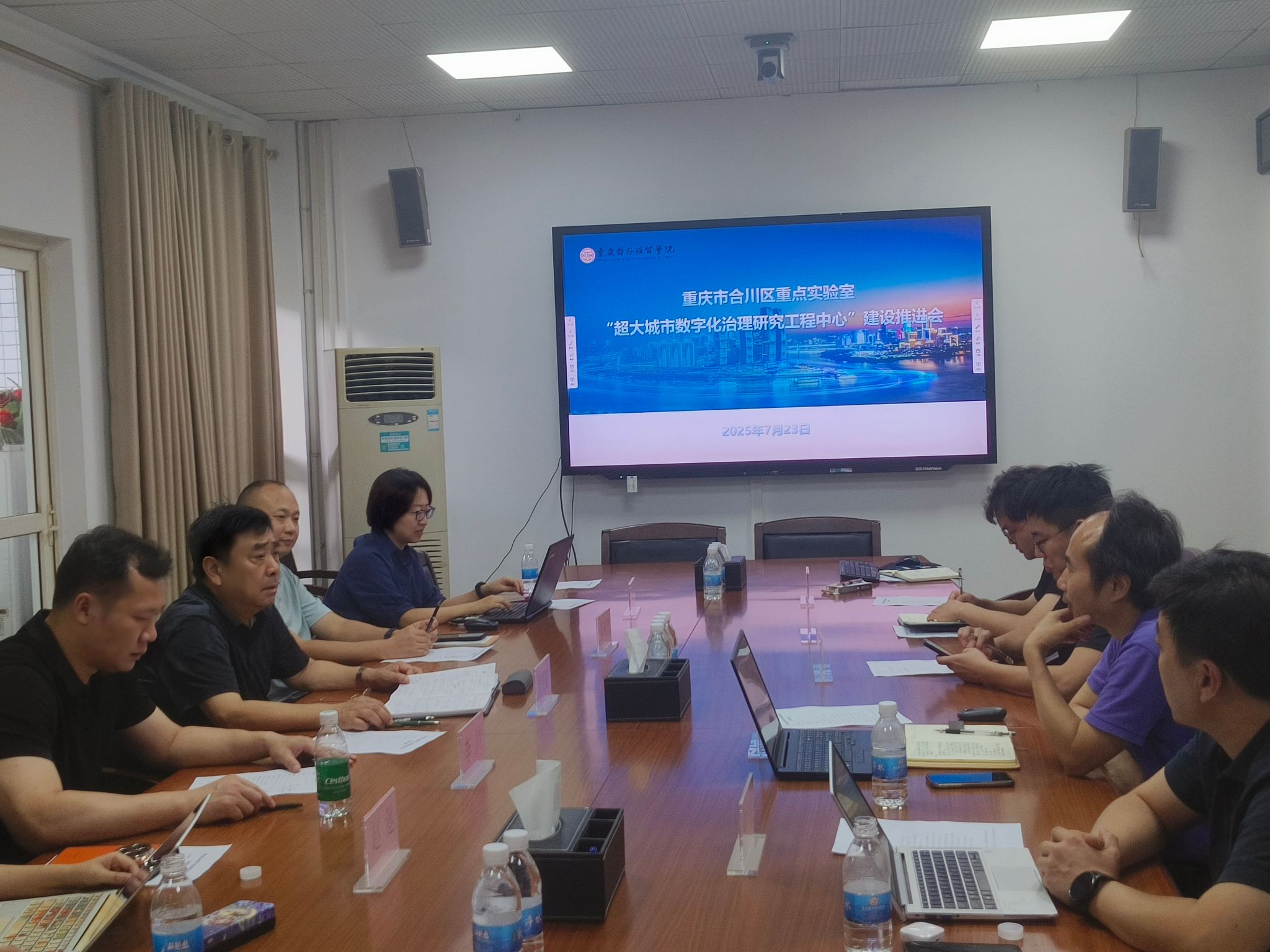 为进一步推进超大城市数字化治理研究工程中心建设工作,2025年7月23日,建设推进会在A校区办公楼二会议室顺利召开。重庆对外经贸学院副校长周明星、李川,重庆超大城市数字化治理学院院长陈蜀宇等学院领导,跨境商务学院院长赵逖,信息技术中心主任从传锋,科研处副处长顾晓蓓,重庆超大城市数字化治理学院相关教师代表参加会议。