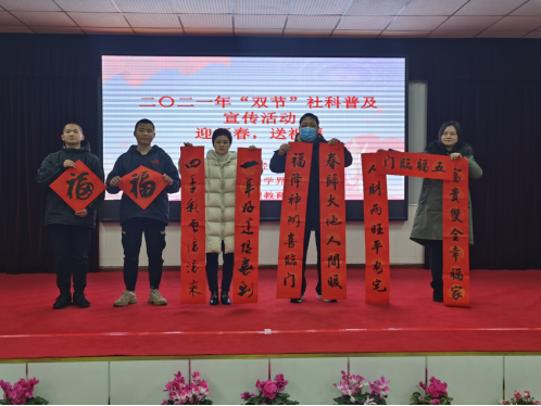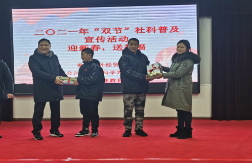 2021年1月25日,我校与合川区社会科学界联合会、合川区社会管理教育培训中心联合举办“双节”社科普及宣传活动弘扬传统文化——“迎新春,送祝福”。我校杜斗恒副校长、科研处彭成处长、图书馆叶甬渝副馆长,合川区社科联黄慧媛专职副主席、社科联发展部邓杨部长等一行来到合川区社会管理教育培训中心(合川区工读学校)送去新春祝福。