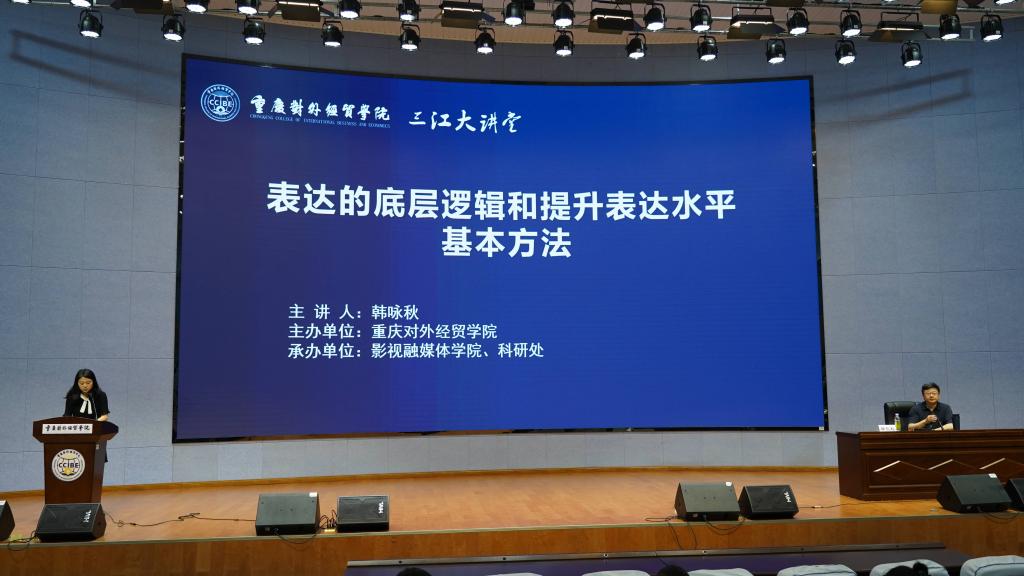为提升学生专业水平,清晰职业要求,2022年6月23日,影视融媒体学院特邀著名主持人韩咏秋开展“表达的底层逻辑和提升表达水平基本方法”主题学术讲座,影视融媒体学院常务副院长王杨丽主持讲座。本次学术讲座是重庆市大型社会科学普及主题活动(合川站)和“三江大讲堂”的系列讲座。