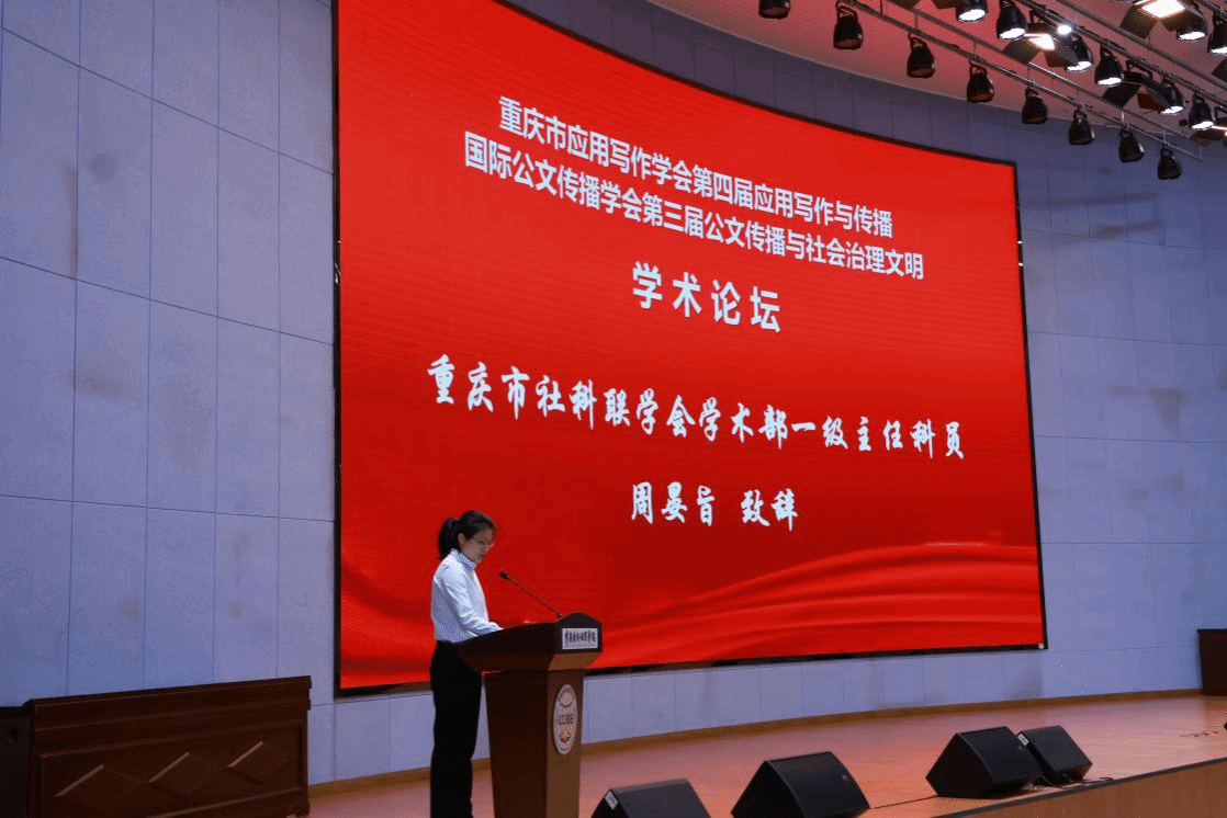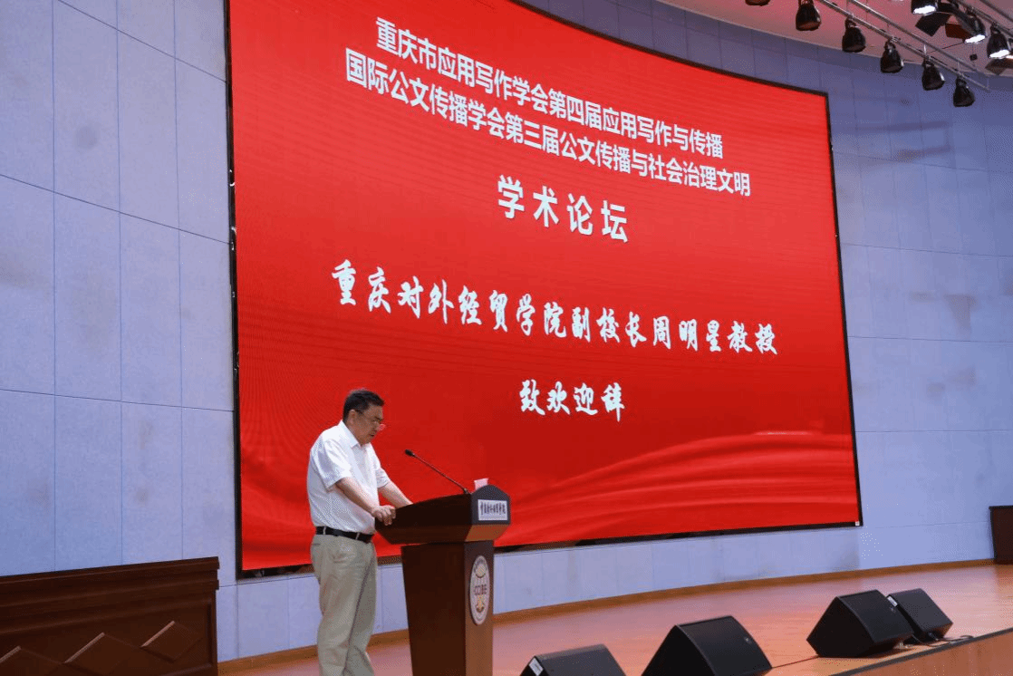 2025年4月19日,由重庆市社会科学界联合会指导,重庆对外经贸学院、重庆市应用写作学会和国际公文传播学会联合主办,重庆对外经贸学院文学与创意传播学院、教务处、科研处,西南大学新闻传媒学院,重庆商务职业学院数字传媒学院,重庆交通大学旅游与传媒学院共同承办的重庆市应用写作学会第四届“应用写作与传播”暨国际公文传播学会第三届“公文传播与社会治理文明”学术论坛在重庆对外经贸学院隆重召开。